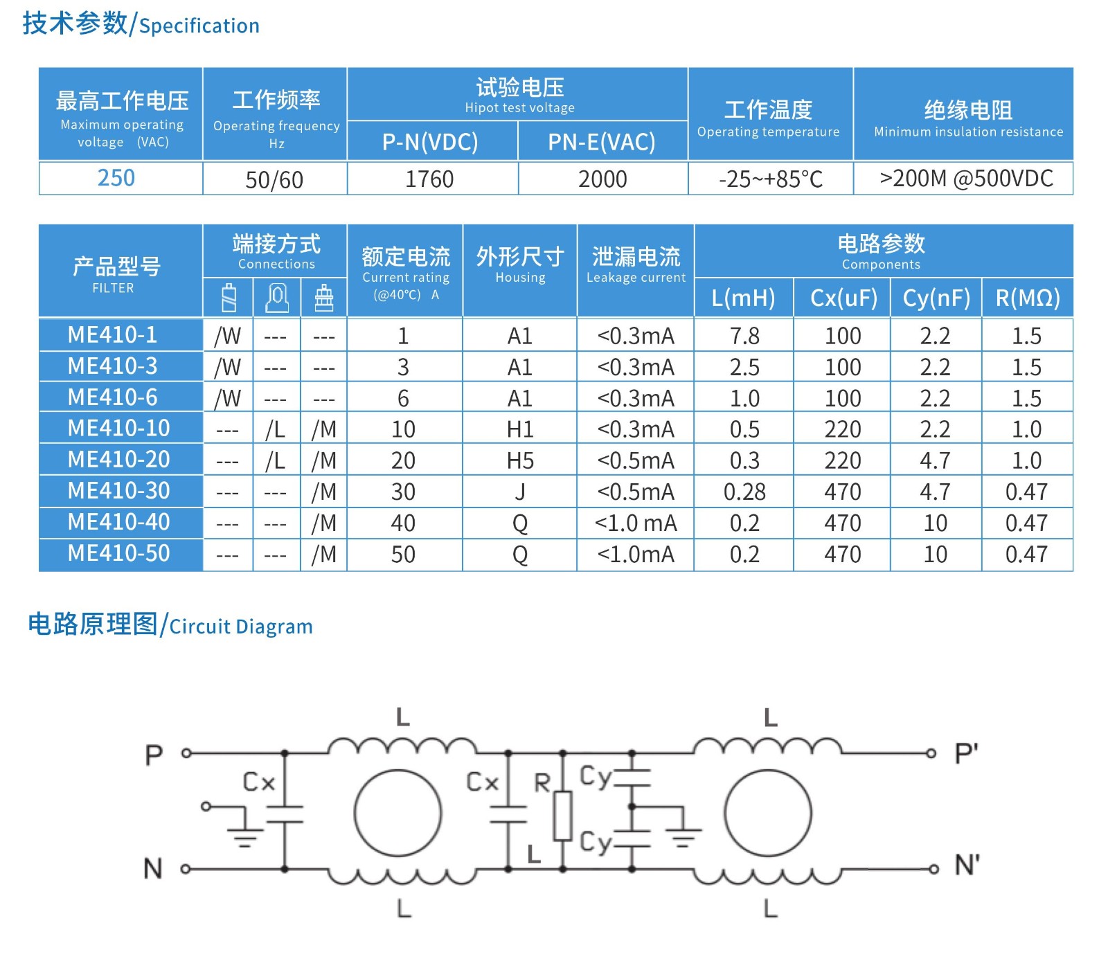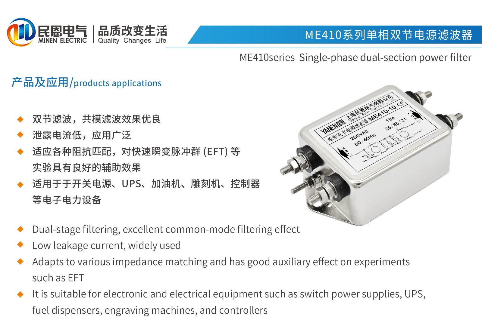 双节滤波,共模滤波效果优良,泄露电流低,应用广泛,适应各种阻抗匹配,对快速瞬变脉冲群 (EFT) 等实 验具有良好的辅助效果。
