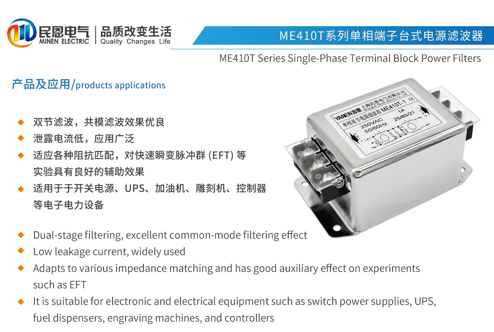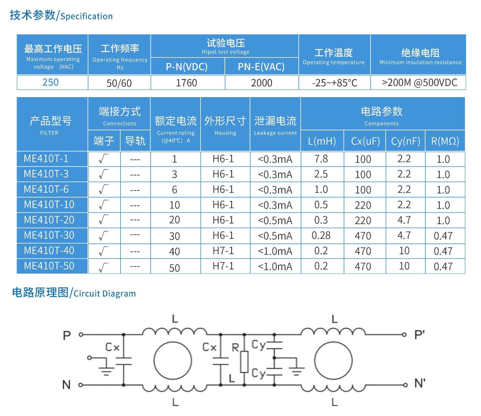 双节滤波,共模滤波效果优良,泄露电流低,应用广泛,适应各种阻抗匹配,对快速瞬变脉冲群 (EFT) 等实 验具有良好的辅助效果。