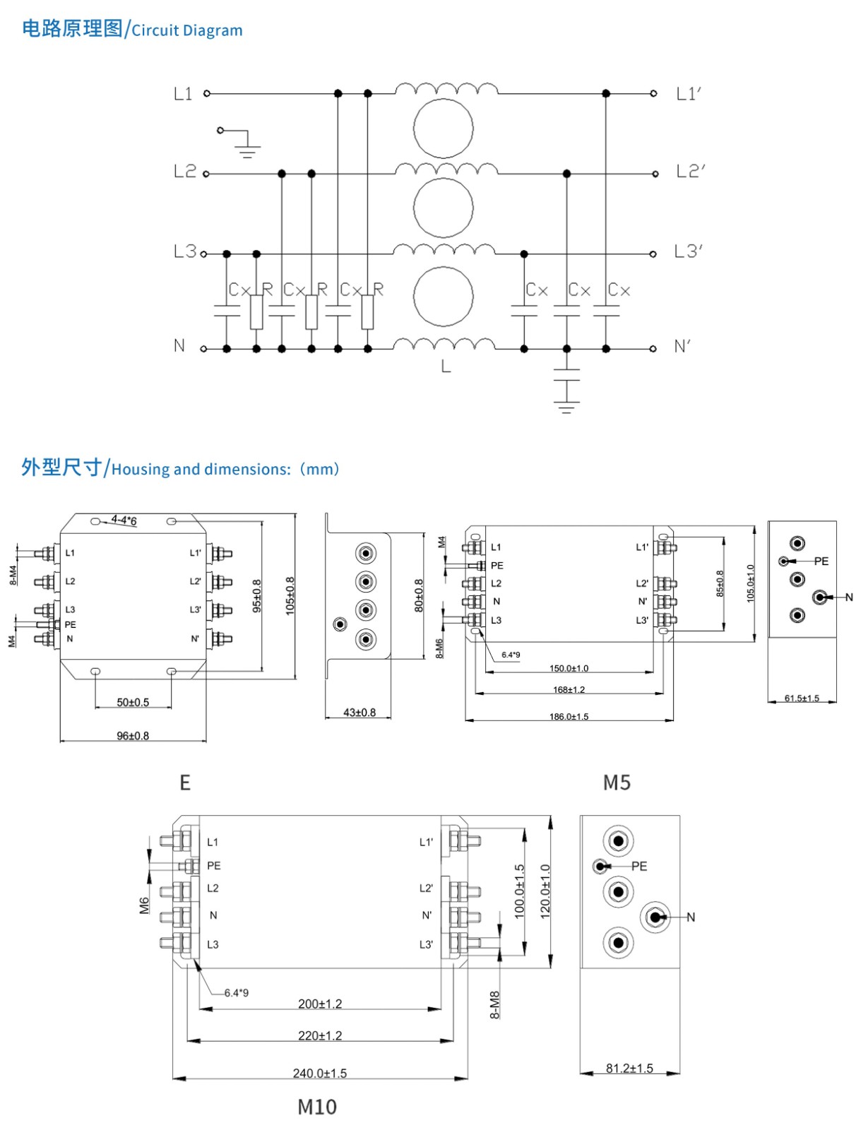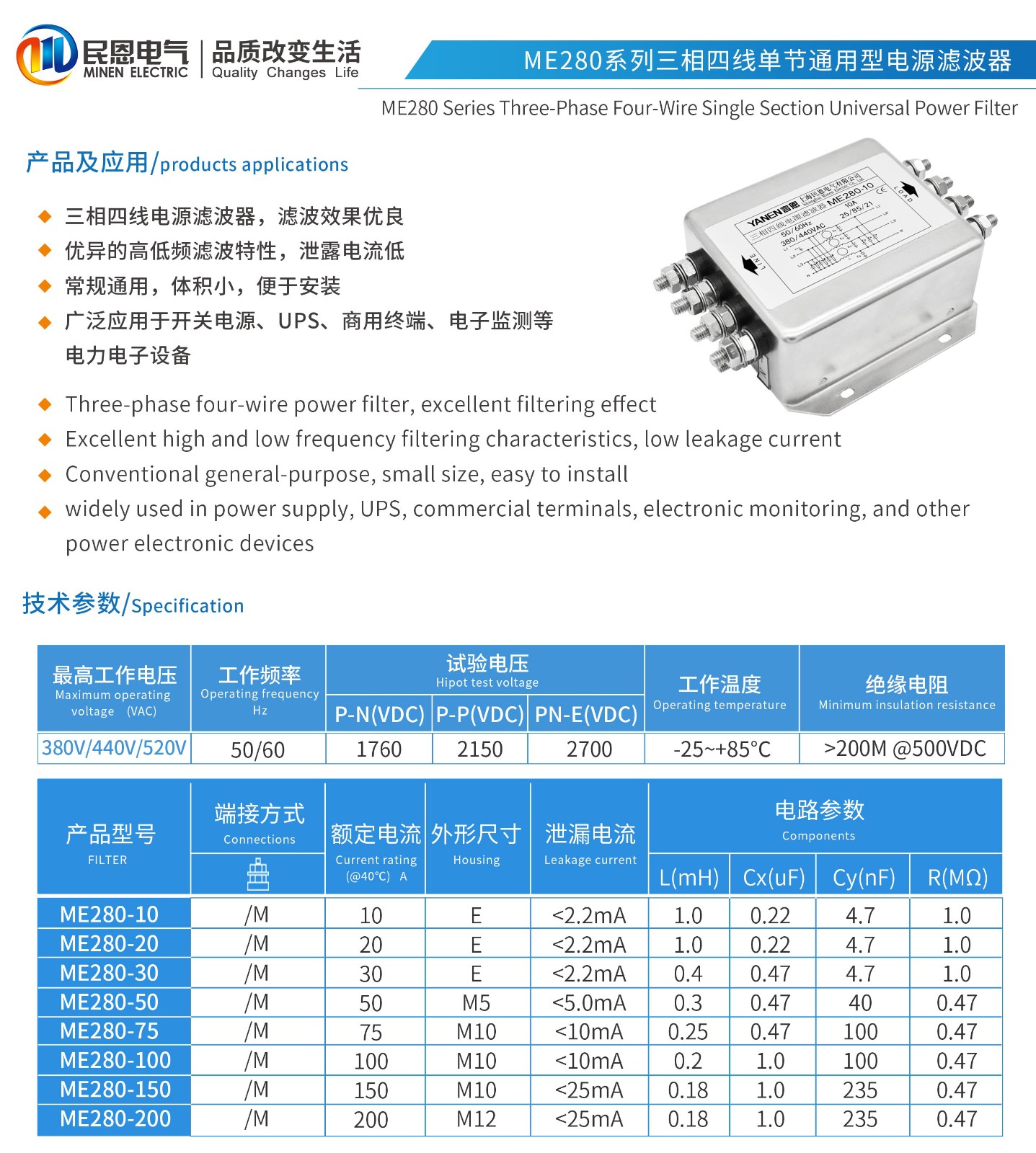 三相四线电源滤波器,滤波效果优良,优异的高低频滤波特性,泄露电流低,常规通用,体积小,便于安装