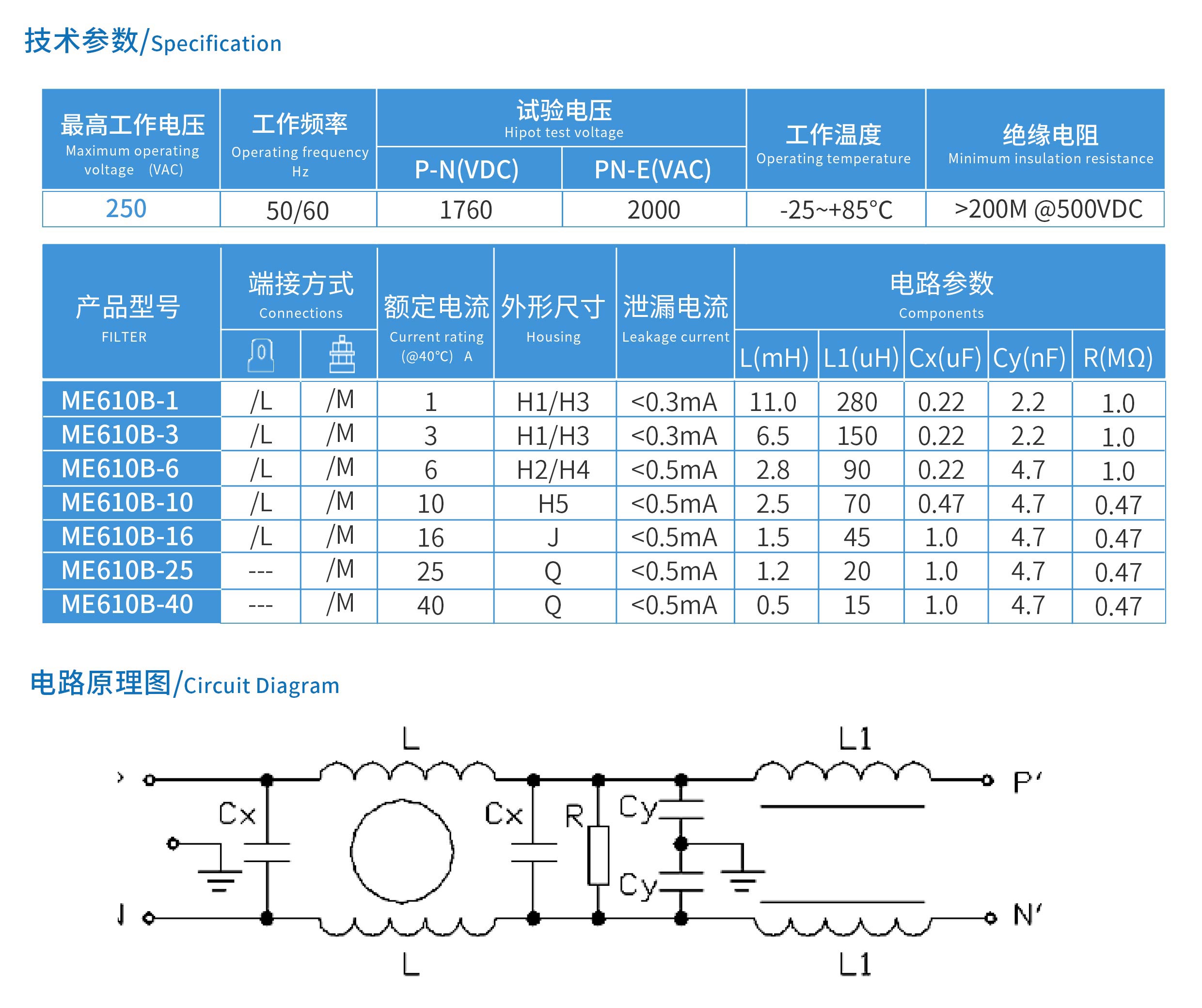 双节滤波器,较强的差模滤波效果,具有差模滤波电感,低频性能优异。
