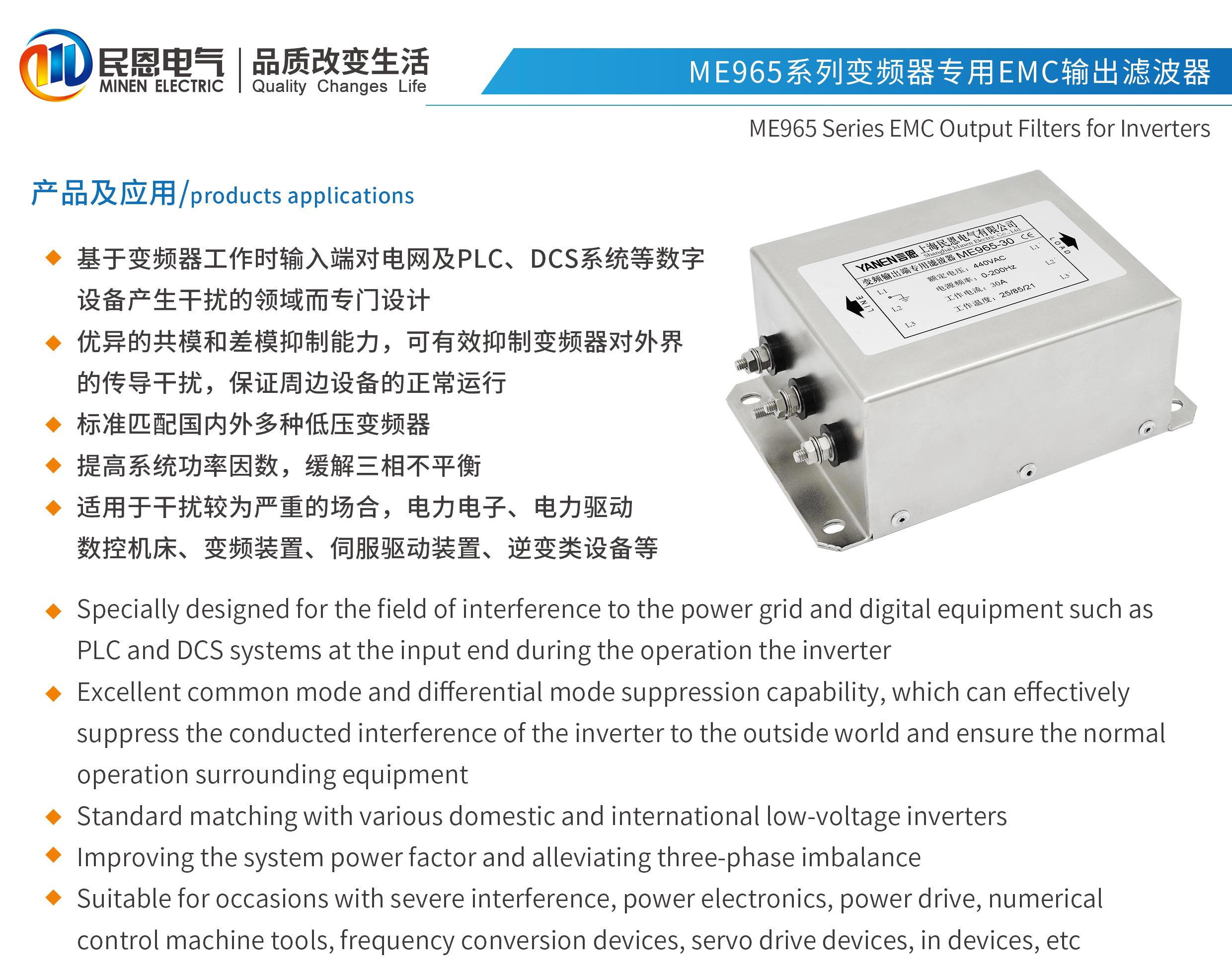 基于变频器工作时输入端对电网及PLC、DCS系统等数字设备产生干扰的领域而专门设计,优异的共模和差模抑制能力,可有效抑制变频器对外界的传导干扰,保证周边设备的正常运行,标准匹配国内外多种低压变频器,提高系统功率因数,缓解三相不平衡