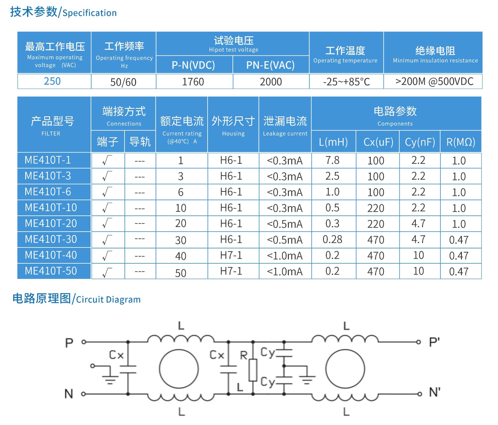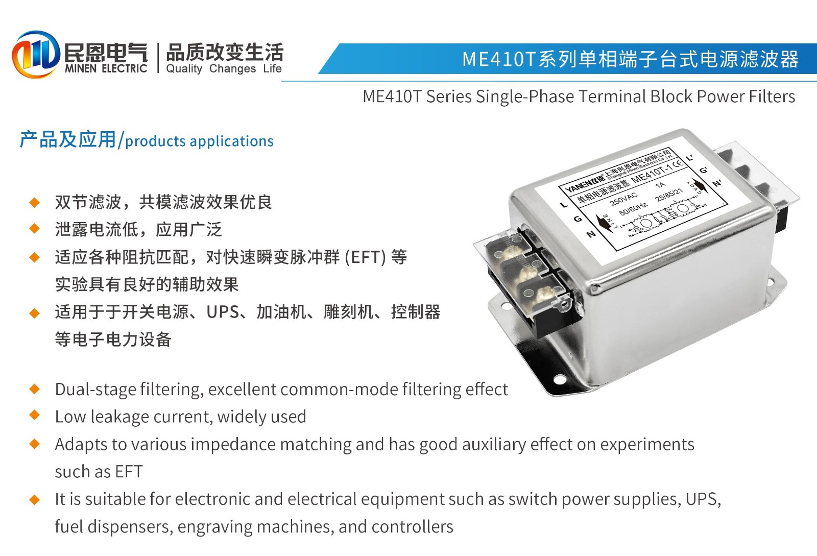ME410T系列单相端子台式电源滤波器