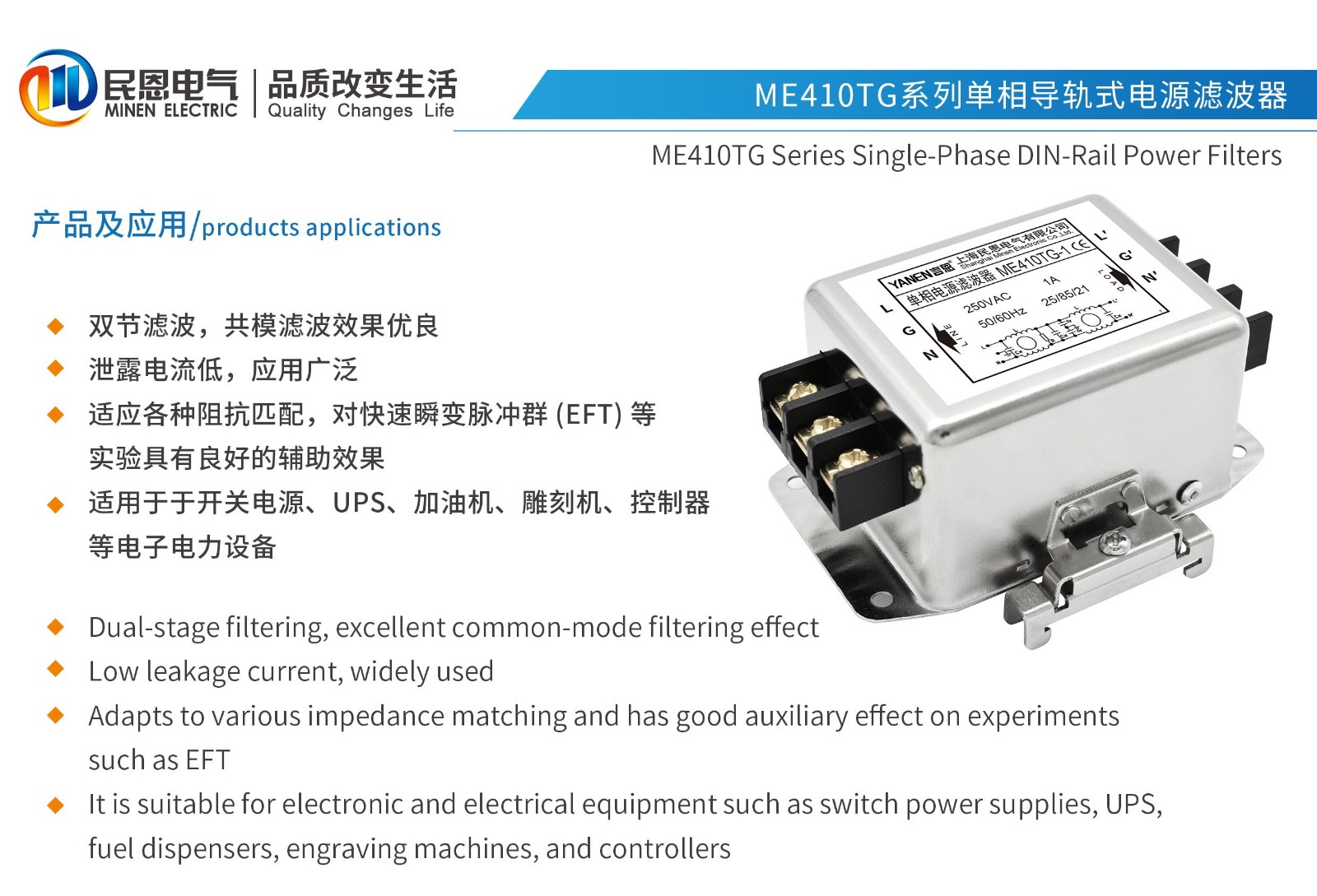 ME410TG系列单相端子导轨式电源滤波器